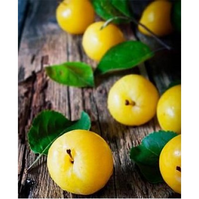 Спелые плоды крупные, цвет от желтого до светло-зеленого. Мякоть алычи имеет кисловато-сладкий вкус и особенно сочная. Не теряет своих качеств при транспортировке.